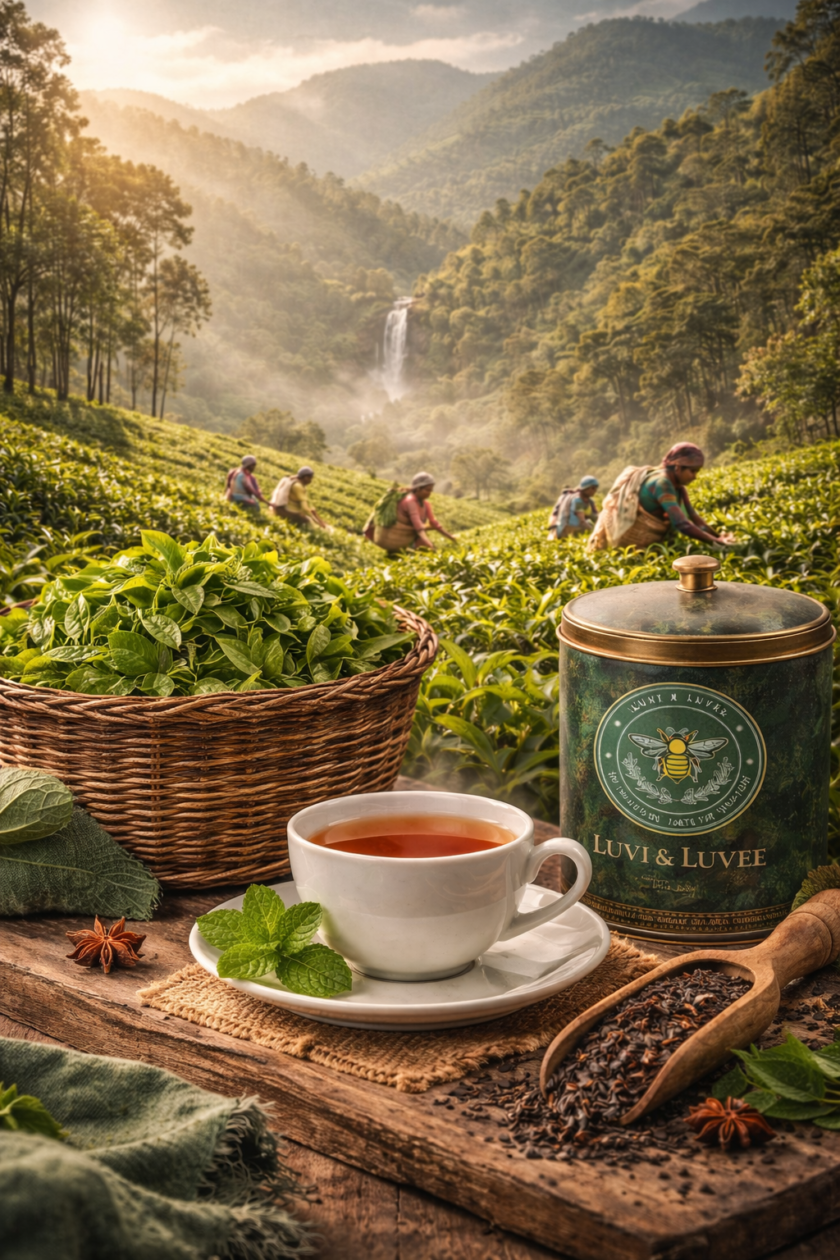 Luvi & Luvee was born in the misty hills of Sri Lanka, where tea is not just grown, but lived. Raised among tea gardens, we learned early that every leaf carries the memory of the land, the climate, and the hands that nurture it.